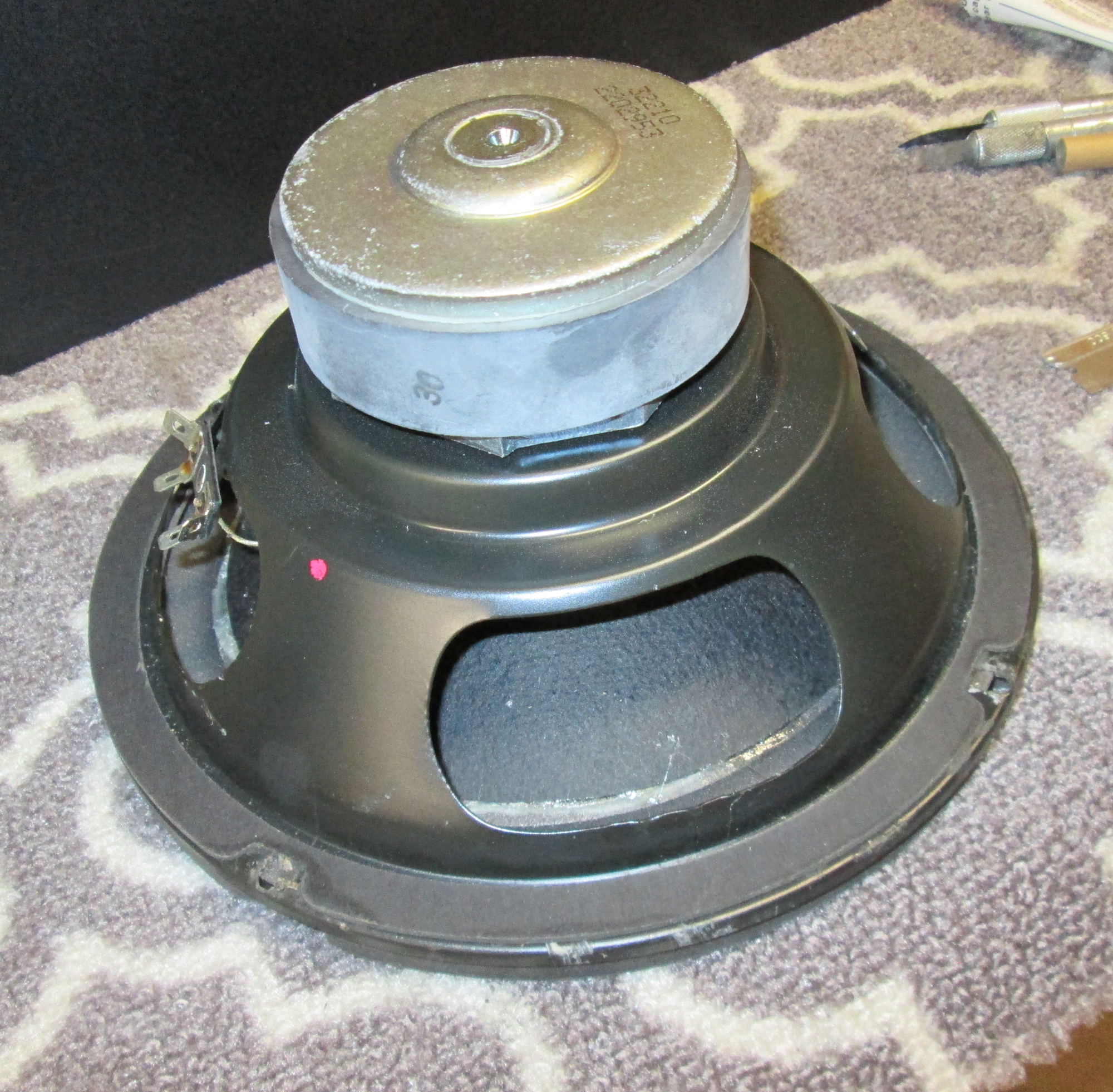 Ever wonder what a woofer looked like? No? Well, here is an 8″ woofer from a Advent Graduate, circa 1980. That round thing on the top is a magnet, and a mighty big magnet that is, too.